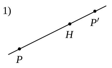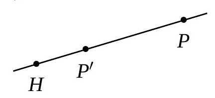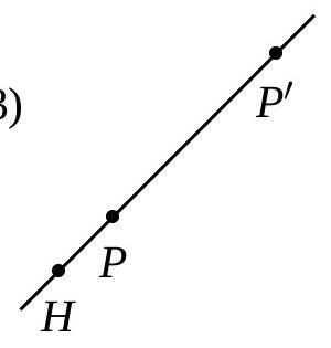 Dans chacune des figures suivantes, le point \(P^{\prime}\) est l’image du point \(P\) par une homothétie de centre \(H\). Pour chaque figure, indiquez :