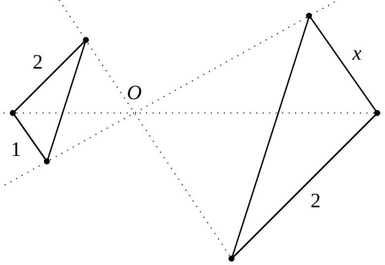 Calculer le rapport d’homothétie et la longueur du segment \(x\).