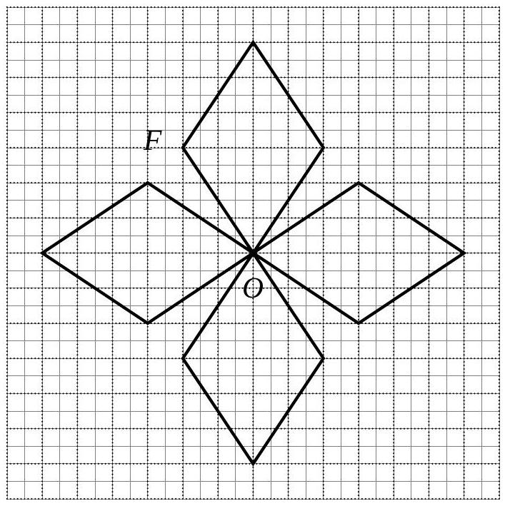 Construire l’image \(F^{\prime}\) de la figure \(F\) par une homothétie de centre \(O\) et de rapport \(+2\).