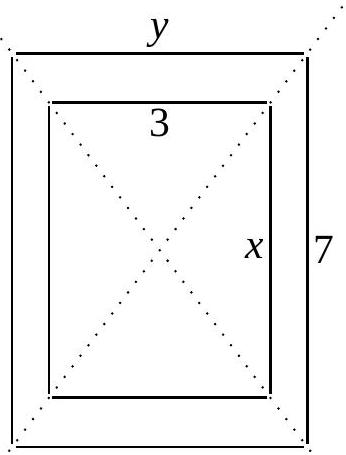 Voici un rectangle et son image par une homothétie de rapport \(\frac{4}{3}\). Calculez les longueurs \(x\) et \(y\).