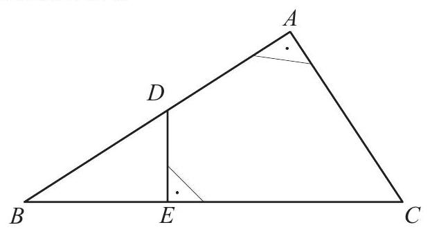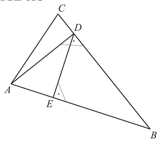 \[AD \perp BC \text{ et } DE \perp AB\] \[\overline{BC} = 35,\ \overline{BD} = 24,\ \overline{DE} = 9,24\] Calculer l’aire du triangle \(ABC\).