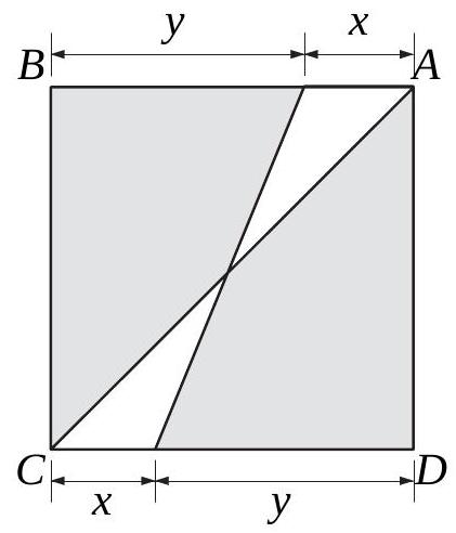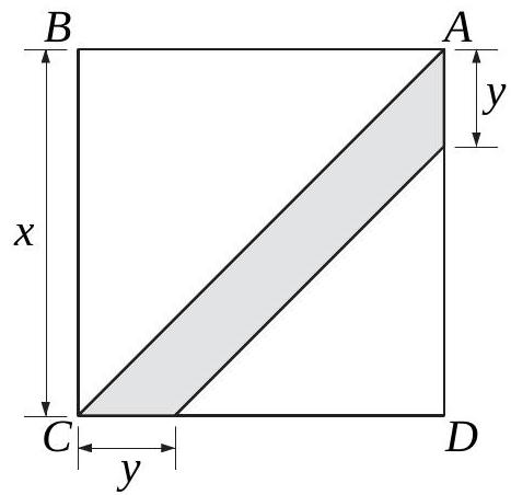 Le quadrilatère \(ABCD\) est un carré. Exprimez par une formule l’aire de la surface ombrée.