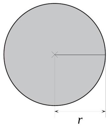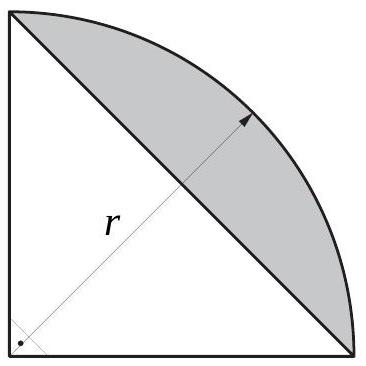 Sachant que l’aire de la zone ombrée est de \(900\,\text{mm}^{2}\), calculez la longueur du rayon \(r\).