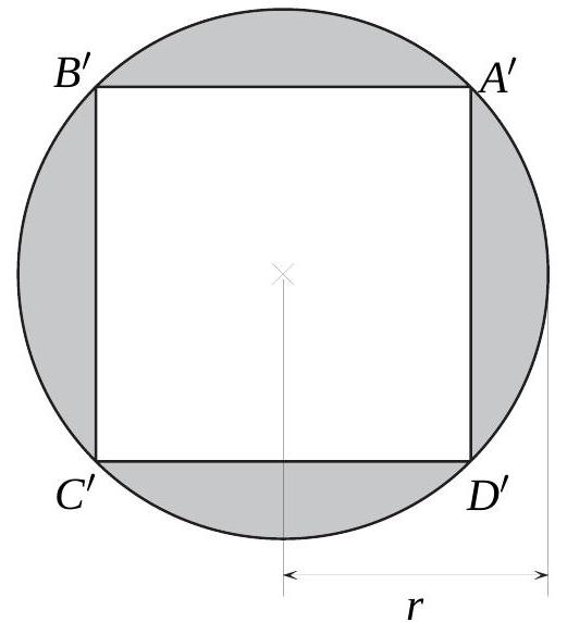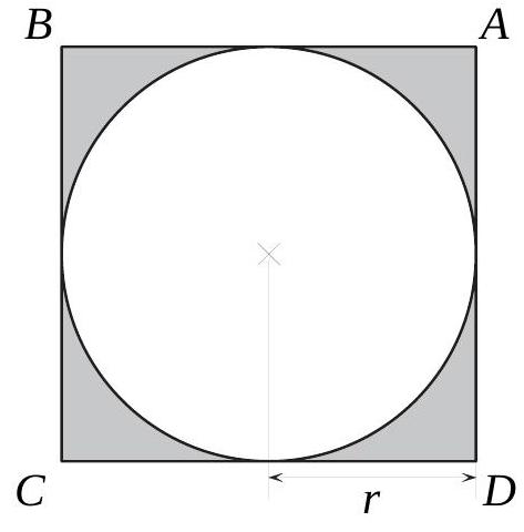 \(ABCD\) est un carré. Exprimez, à l’aide d’une formule, l’aire de la surface ombragée.