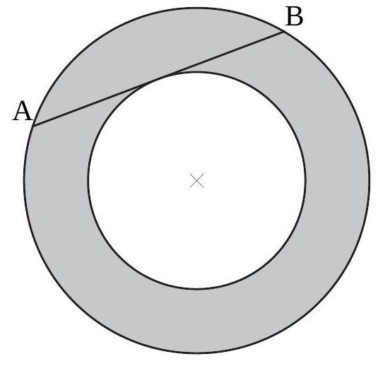 Calculer l’aire de la figure ombrée, sachant que la longueur de la corde [AB], tangente au petit cercle, est de 24 cm.