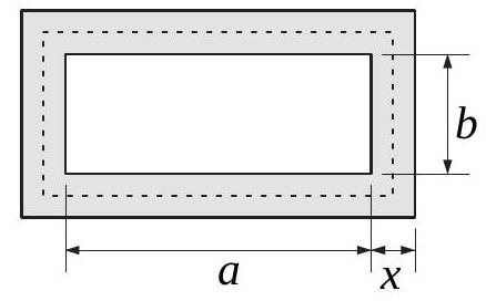 Un terrain rectangulaire est entouré d’un chemin de largeur \(x\) et d’aire \(A\).